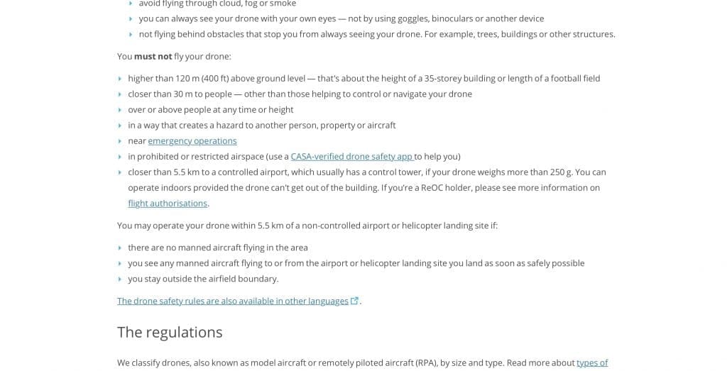 Control of the airspace over a country is typically administered by two organisations - the first is the military and the second is a department of the government who look after all the non-military aircraft. Here in Australia that organisation is the Civil Aviation Safety Authority or CASA for short. These guys used to purely concern themselves with actual aircraft like passenger jets, light aircraft and helicopters - but now they are in charge of drones too and I dare say they'd rather they weren't.