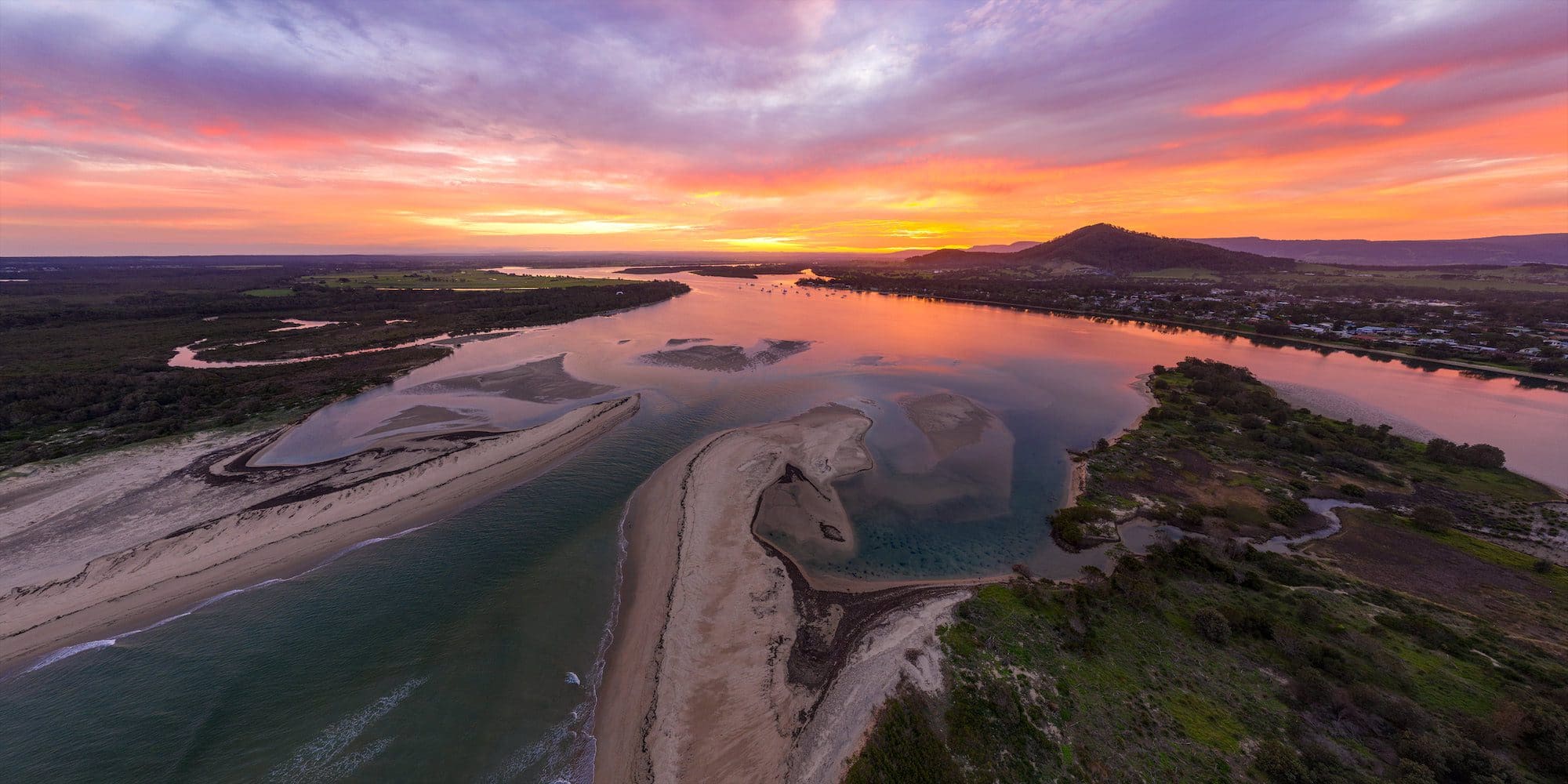 The photograph was taken at the very southern end of Seven Mile Beach in the holiday village of Gerroa. This is a location I am extremely familiar with - it's my go-to sunset spot and I've taken over 20,000 photographs there. I keep going back to Gerroa because it's one of the few places on the east coast where you can photograph the sun setting over the water. The beach here curves back around on itself and the land extends out at Black Head meaning you have lots of options in terms of the location of the sun. It's also, obviously, a photogenic location and, whatever the time of year, I always find something cool to photograph.