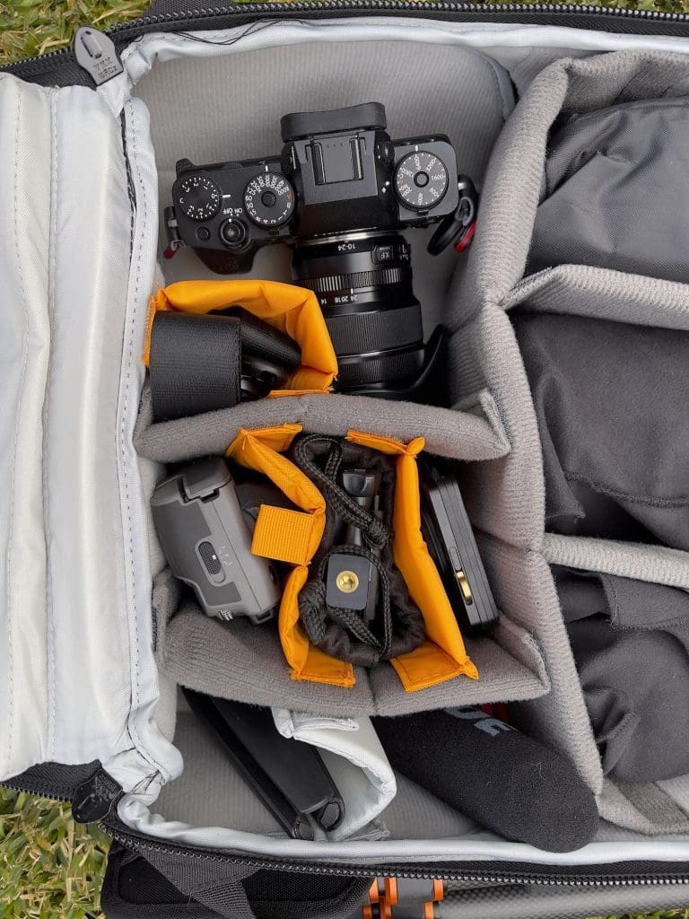 • It needed to be bigger, because I simply have a lot more stuff now than when I first started out. I have more lenses, a drone, more accessories and several action cams.