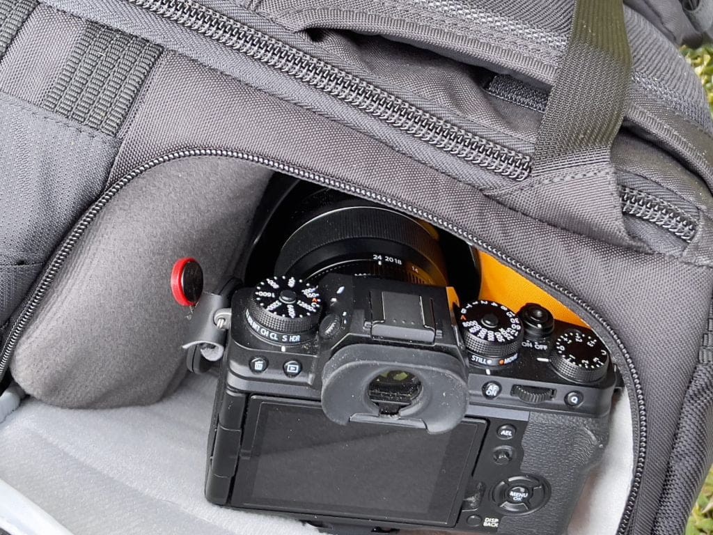 The side panel access zippers work really well too. To access my camera, I simply slip the left strap off my shoulder, slide the bag around to my front, unzip and remove the camera and then slide it back. It feels pretty natural to do this and the equipment feels secure even with the single strap on thanks to those afore-mentioned wide straps.